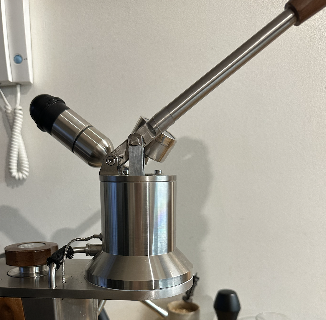 | Correct assembly for Direct Lever configuration: The brew chamber only opens to the boiler when the lever is lifted to approximately this height. | Incorrect assembly of for Direct Lever configuration: The brew chamber will open to the boiler when the lever is lifted to this height. |