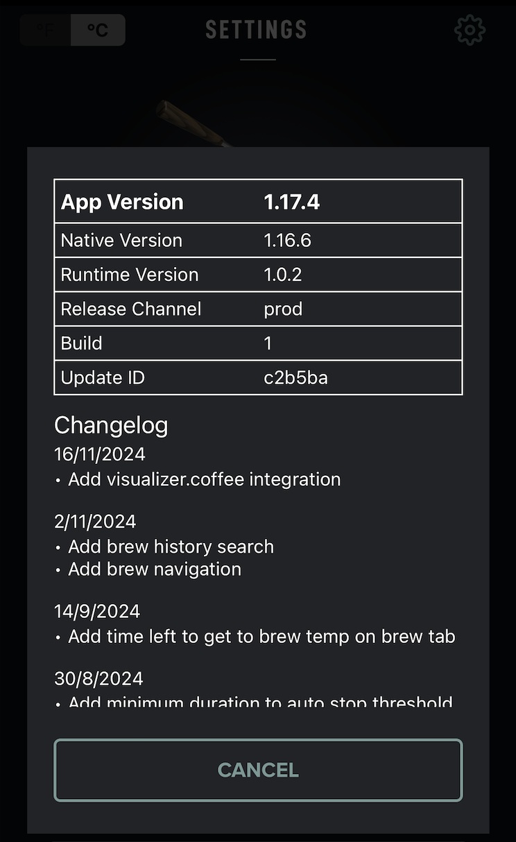 The app also includes built-in integration with Visualizer.coffee, giving you even more powerful tools for tracking and analyzing your brews.