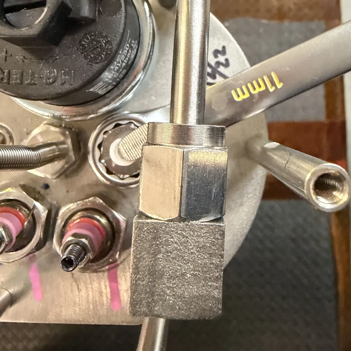 - Tighten the inner nut with 11m wrench. It is a compression fitting so it needs to be fairly snug