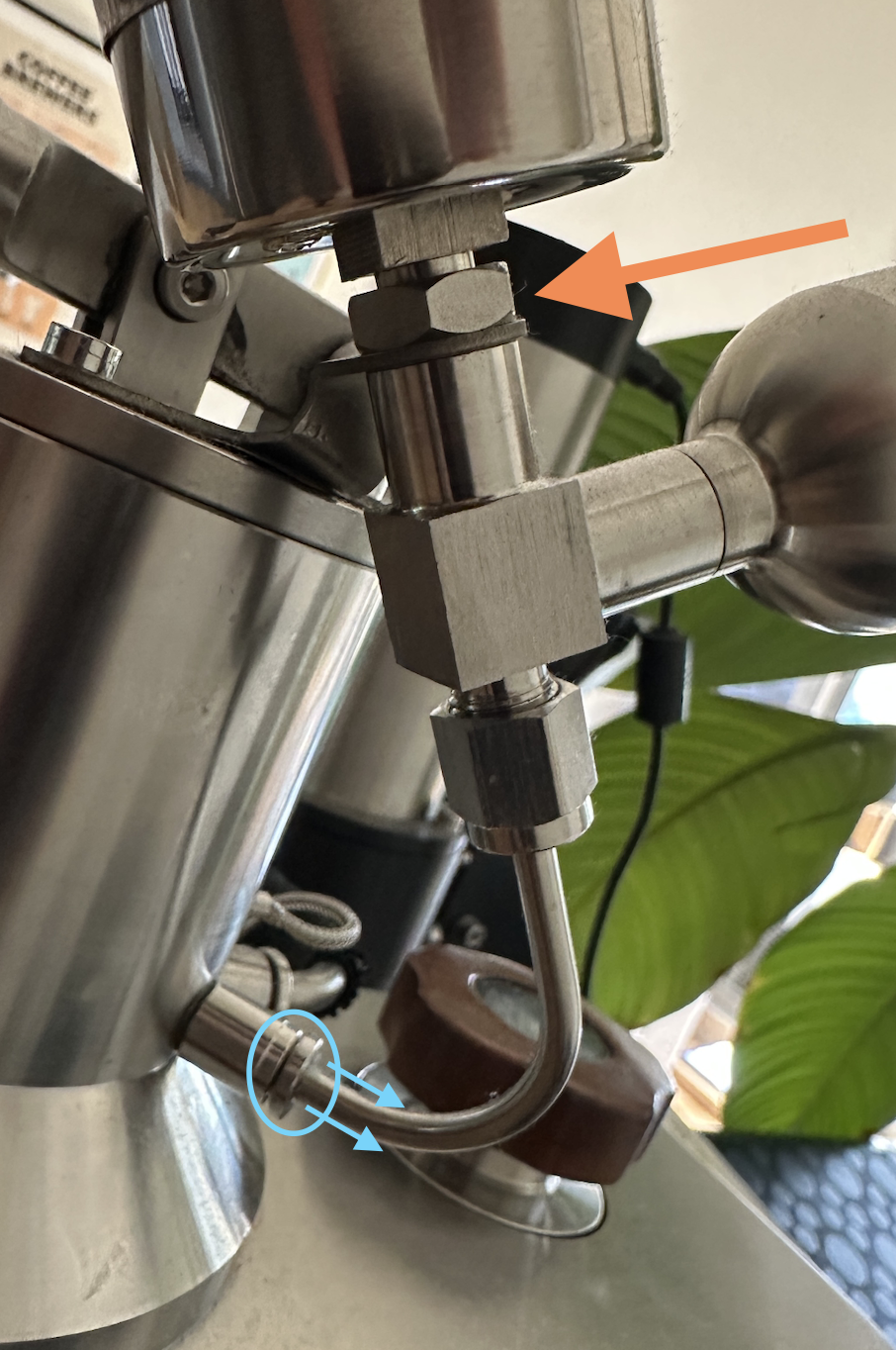 Ensure there is no play between the tube fitting and the bracket that connects it to the grouphead. You want the nut, bracket, and the fitting below to fit together flush, with no gaps.