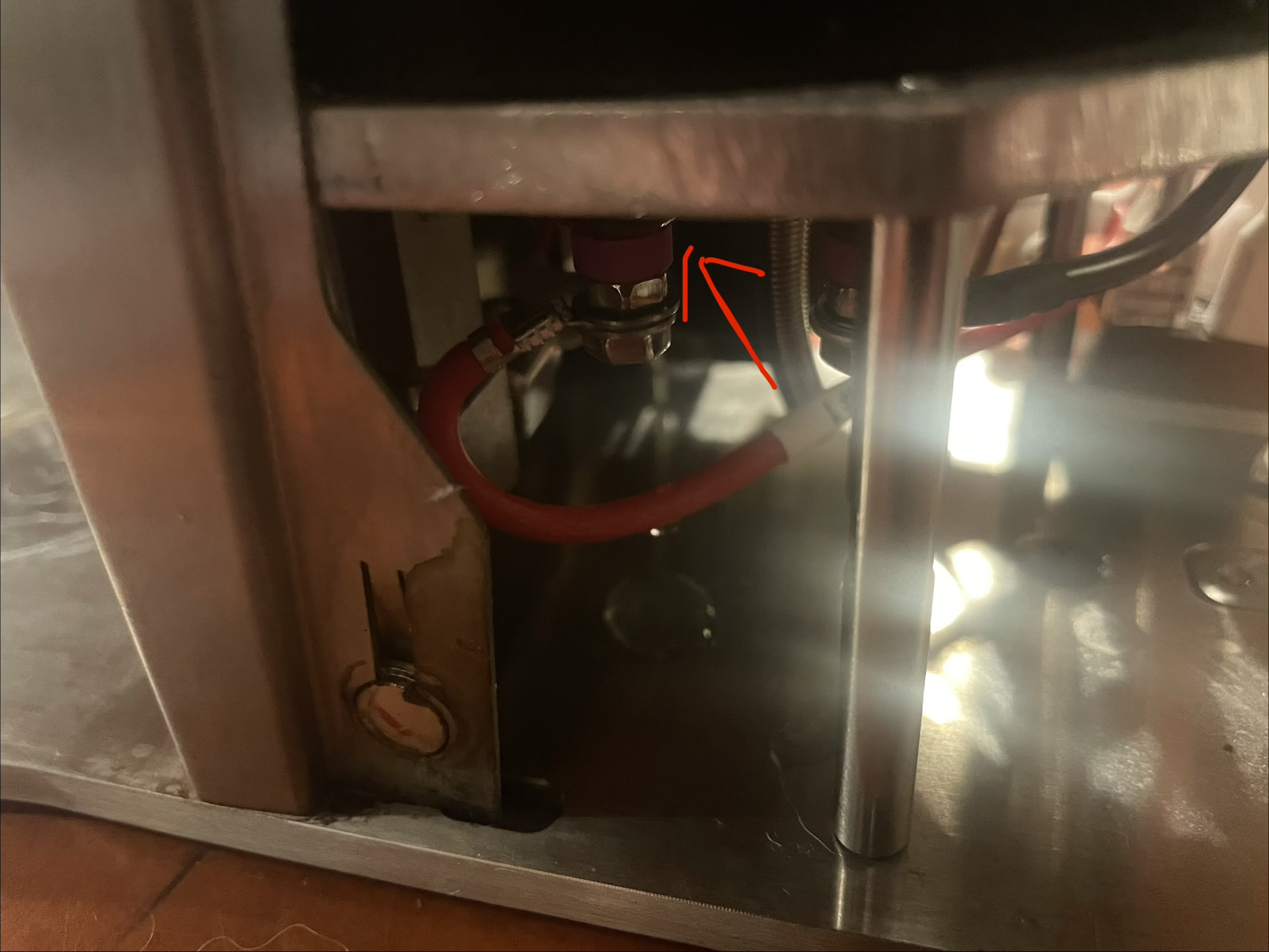- You should now have access to the bottom of the boiler. You will need to remove the heating element power wires on top of the element by removing the 2 small nuts on very top of each post with a 7mm wrench. Then preferably with a long thin 17mm socket you can tighten the larger nuts on the bottom of the heating element posts.